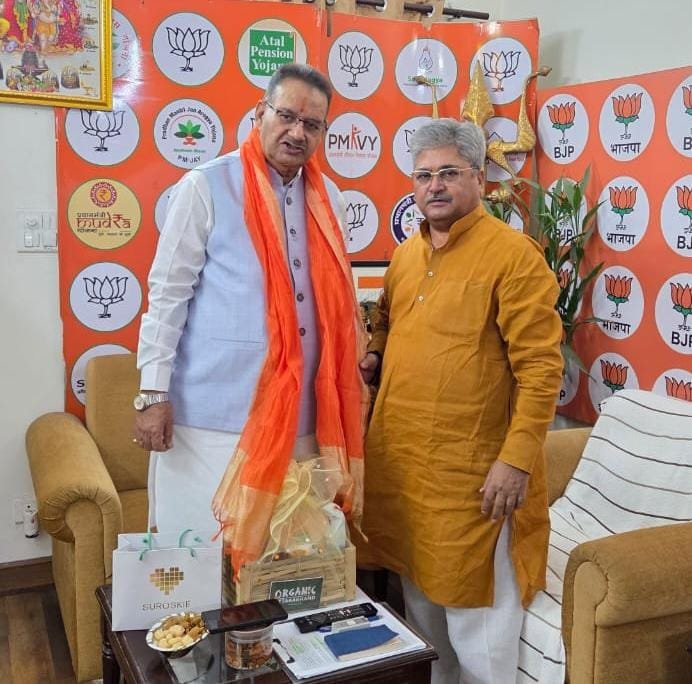 Share Facebook Twitter Telegram WhatsApp नई दिल्ली, 15 सितम्बर। कैबिनेट मंत्री गणेश जोशी ने आज नई दिल्ली में भारतीय जनता पार्टी के राष्ट्रीय महामंत्री एवं उत्तराखण्ड प्रदेश प्रभारी दुष्यंत कुमार गौतम से शिष्टाचार भेंट की। इस अवसर पर कई समसामयिक विषयों पर विस्तार से चर्चा की गई।